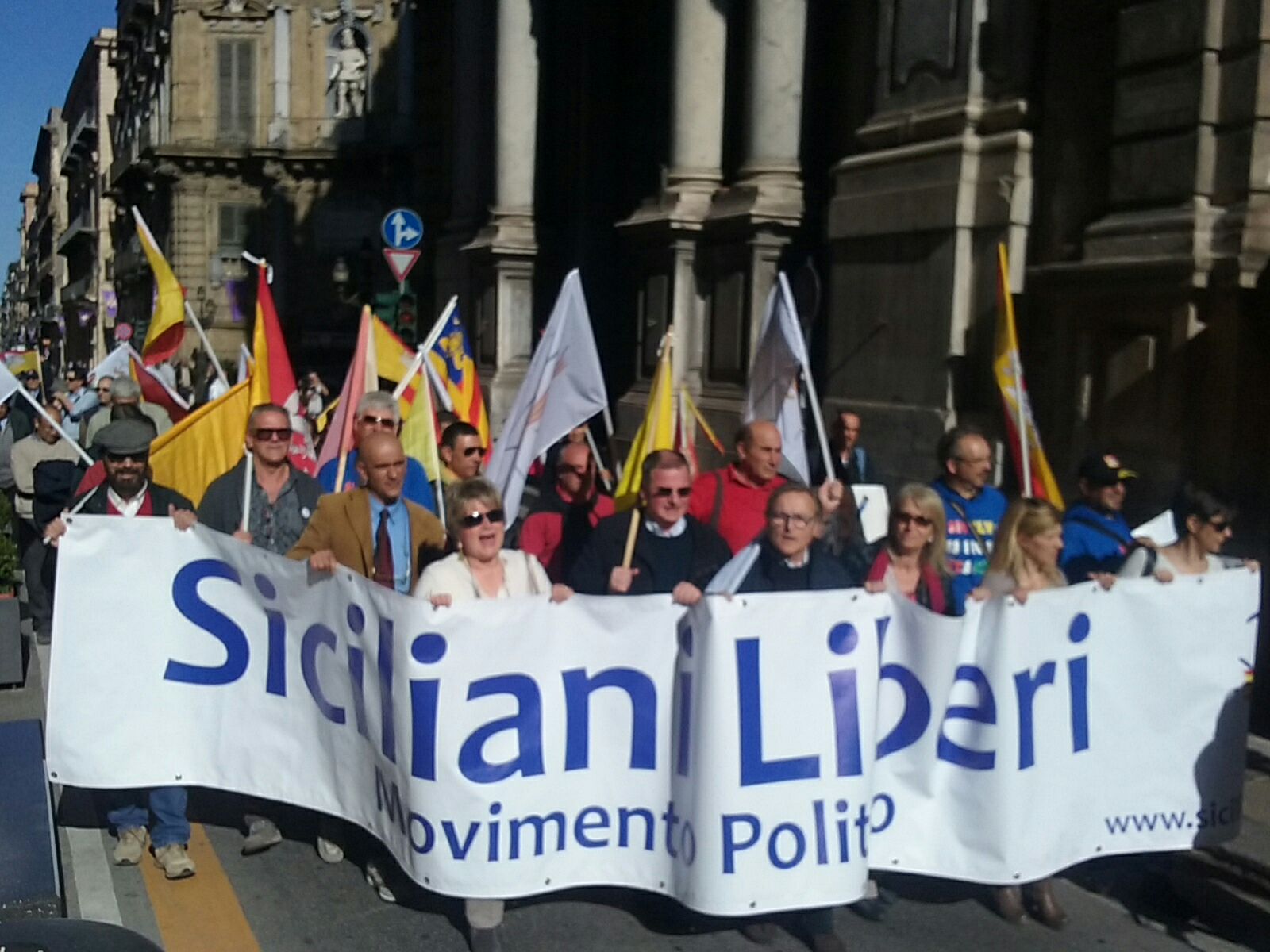 Ecco le prime immagini della protesta colorata con i colori della bandiera siciliana.