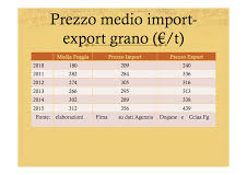 Nel 2012 il prezzo del grano duro scende un po’ rispetto all’anno precedente e si attesta intorno a 27,4 Euro al quintale. Contemporaneamente l’Italia (cioè la grande industria della pasta) importa grano duro estero, di qualità uguale se non di gran lunga inferiore al grano duro del Sud Italia, ad un prezzo pari a 30,5 Euro al quintale.