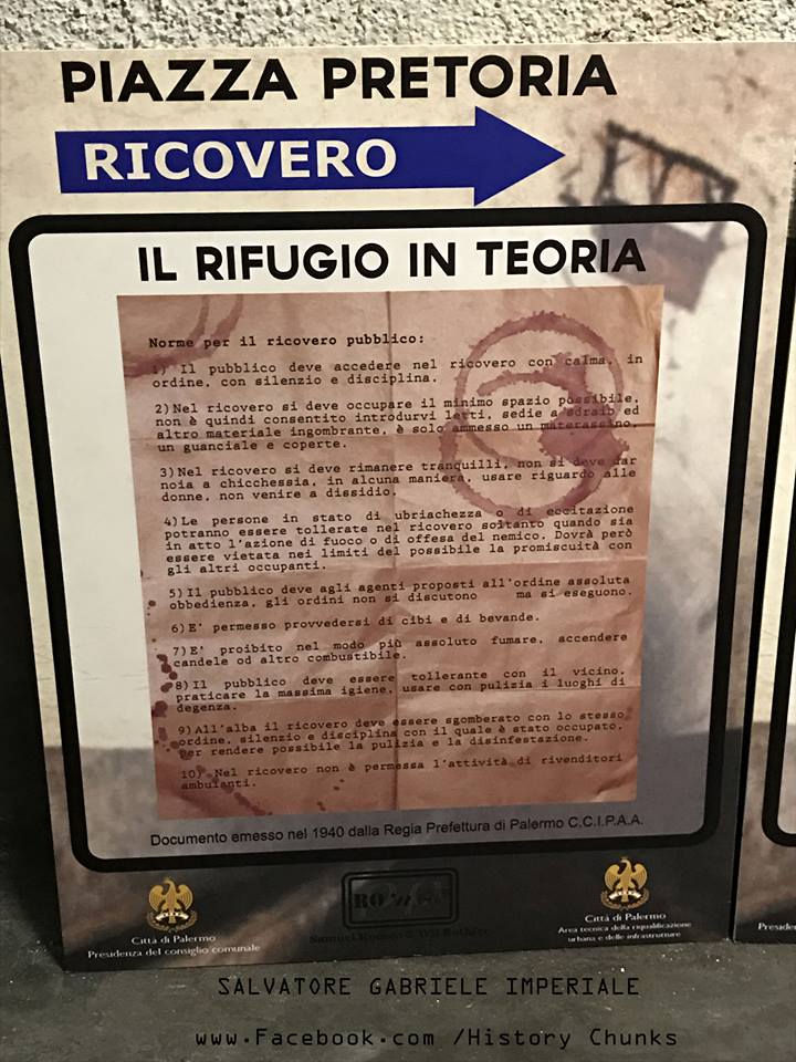 Pochi metri sotto gli splendidi pavimenti marmorei di Palazzo delle Aquile una serie di cunicoli che potevano ospitare 500 palermitani durante gli attacchi aerei dotati di tre bagni e acqua potabile. Il giovane Salvatore Gabriele Imperiale li ha visitati e racconta ai lettori dei Nuovi Vespri come è nato questo luogo mostrandoci anche le foto che ha scattato
