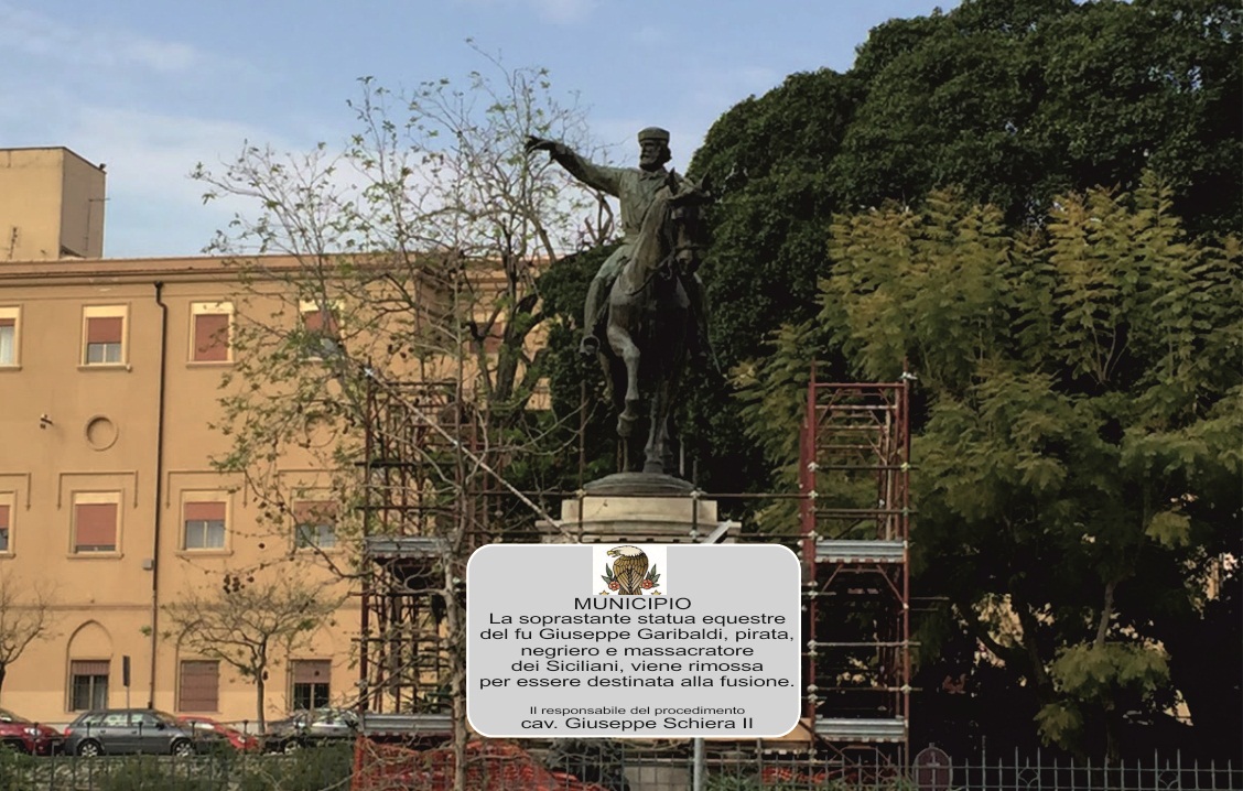 Nell’anniversario dello sbarco di Garibaldi in Sicilia, Maggio 1860, l’amministrazione, con un ritrovato spirito di libertà, ha deciso di ripulire la città da tutti i cascami di quella grande truffa ai danni del Sud detta altrimenti risorgimento.