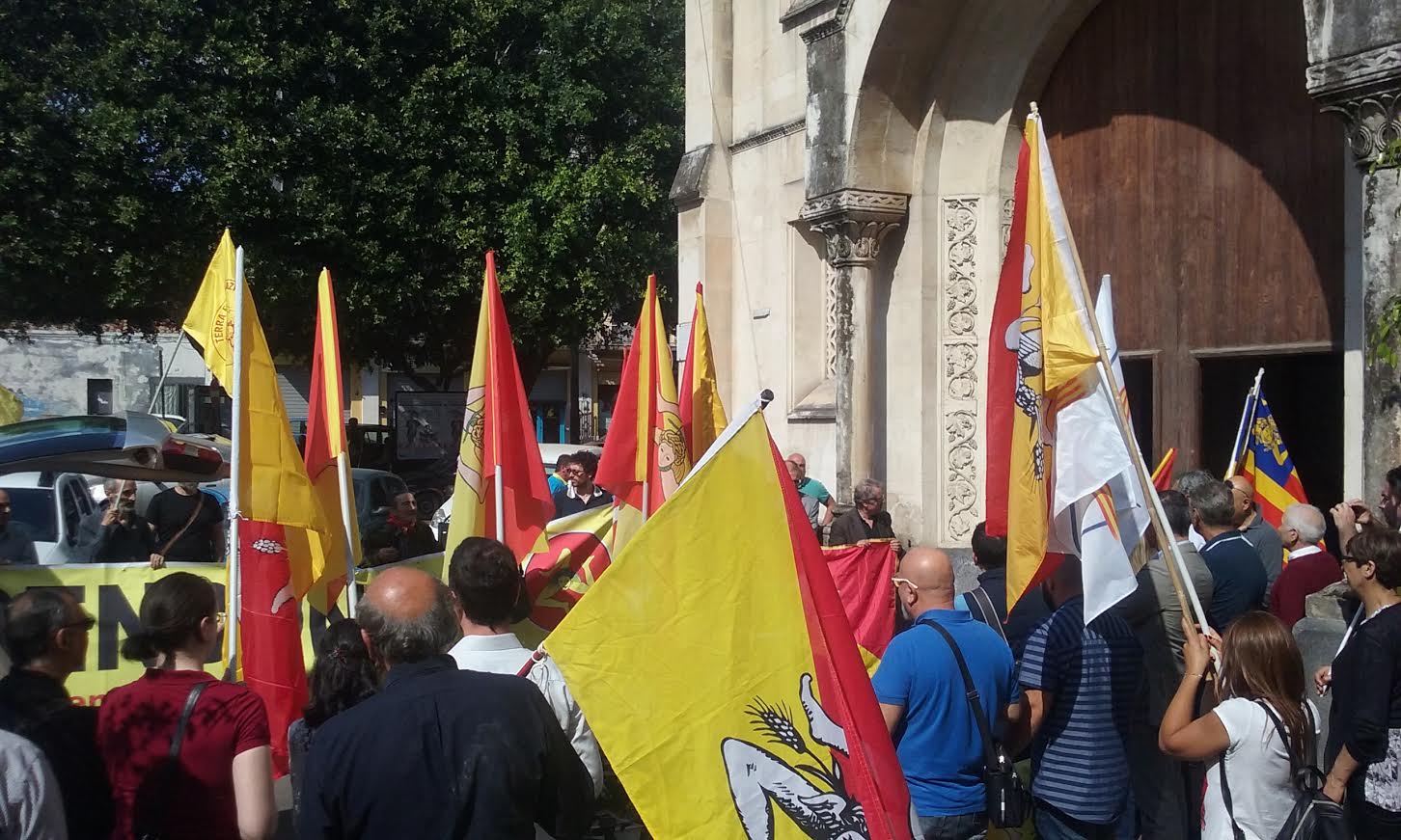 Ieri pomeriggio, a Catania, nella Chiesa di Santa Maria La Guardia, il funerale di Santo Trovato, esponente di spicco del mondo indipendentista siciliano di sinistra. Un tripudio di bandiere siciliane e tanti amici commossi