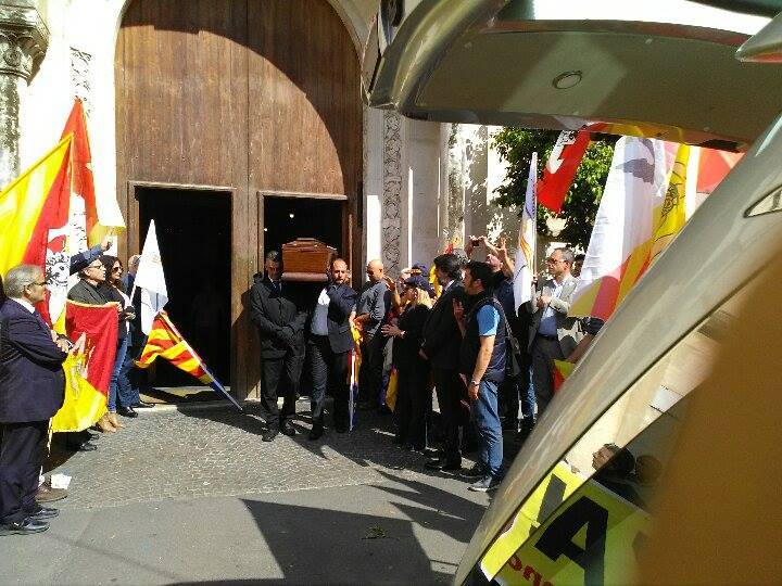 Poi l’ultimo addio: tutti in fila, fuori dalla Chiesa, con le bandiere spiegate in mezzo alle quali è passato Santo: “Addio patriota Siciliano, An.tu.do”.