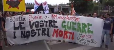 Ma gli slogan al momento sembrano più indirizzati verso la politica estera: “Siamo tutti clandestini”, “No alla NATO”.