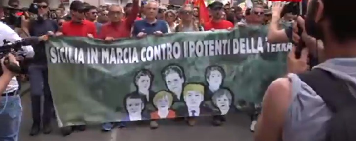 Slogan contro le guerre, contro gli attacchi alla Libia, contro le politiche dei potenti “delinquenti” , contro “gli assassini in giacca e cravatta”, contro le politiche sui migranti. E’ un corteo variopinto e variegato quello che sta percorrendo le strade di Giardini Naxos. Sono arrivati pullman da tutta la Sicilia, ma non solo. C’è una delegazione con oltre 150 rappresentanti dei Centri sociali partenopei e dal porto di Napoli sono arrivati manifestanti provenienti da tante città italiane.
