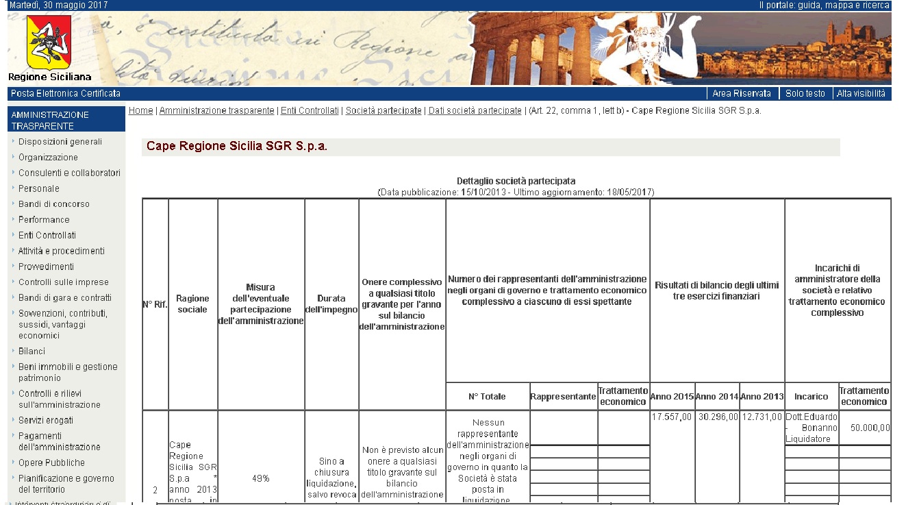 Così leggiamo sul sito della Regione Siciliana in questa pagina che contiene uno schema sulle partecipate in liquidazione.