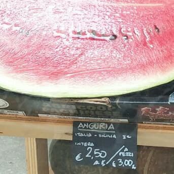 Non va meglio per l’anguria (foto sotto). Viene presentata come “Italia-Sicilia”, ovvero
