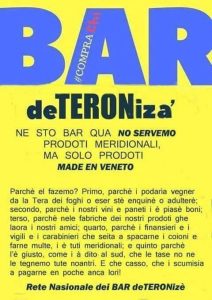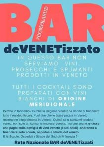 Nella pagina Facebook di Vento Brigante, Vento da Sud che leggiamo che in Veneto, in risposta ai Bar devenetizzati, stanno lanciando l’iniziativa: