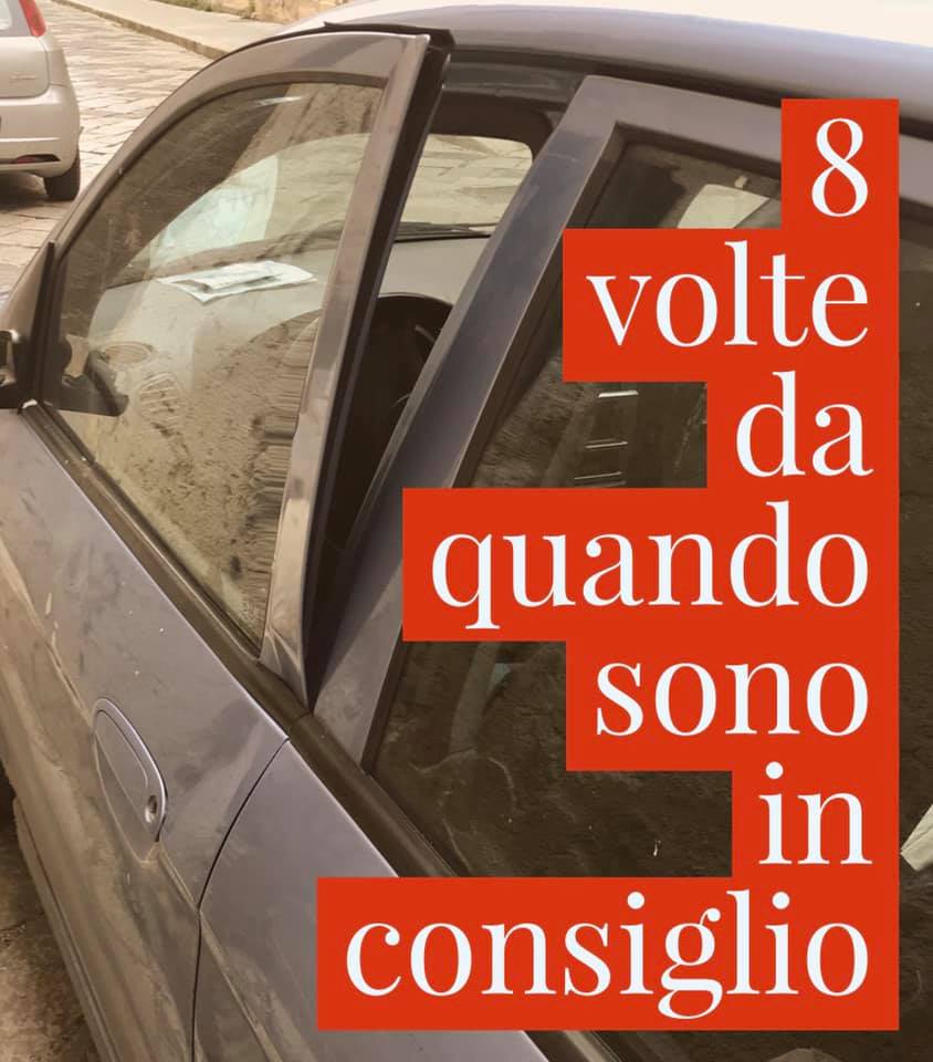 Oggi, per l’OTTAVA volta da quando sono consigliere comunale, ho trovato la mia auto danneggiata e vandalizzata.