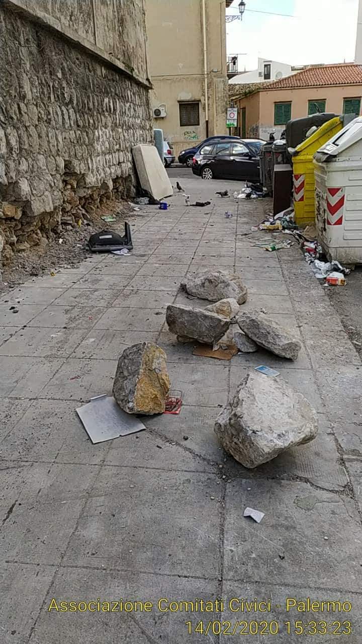 Segnaliamo ancora una volta che le maestranze della Rap, usando maldestramente la ruspa, nel procedere alla rimozione dei rifiuti abbandonati sul marciapiede di via Diego Orlando, hanno danneggiato ulteriormente il muro di cinta della Scuola Elementare “Nuccio”.