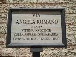 Oggi a Castellammare del Golfo e Gaeta ci sono le vie dedicate ad Angelina Romano (foto tratta da 360econews). Ma, purtroppo, in tante città del Sud e della Sicilia, ci sono ancora vie, piazze, scuole, Teatri e persino Musei che portano i nomi infami di Garibaldi e dei Savoia. Tutte vergogne che andrebbero eliminate, insieme con le statue di questi ‘banditi’ e usurpatori.