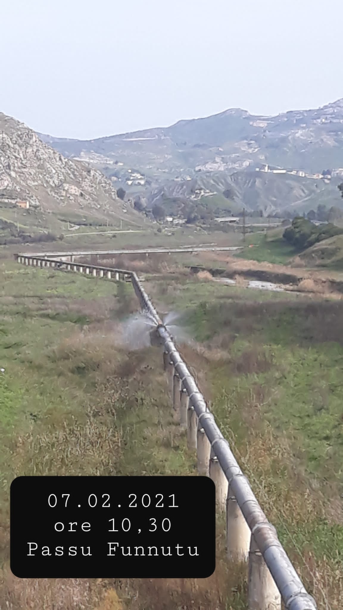 Da circa un anno la condotta Fanaco-Madonie Ovest, in contrada Passu Funnutu, che ricade nei territori che si snodano tra Campofranco, in provincia di Caltanissetta, e Casteltermini, in provincia di Agrigento ha una vistosa falla da dove fuoriesce e si disperde nell’ambiente una notevole quantità di acqua. Noi di Gran Sicilia, avuta notizia di questo scempio, ci siamo attivati e abbiamo acquisito prove fotografiche a partire dall’1 Gennaio di quest’anno in poi. Contemporaneamente abbiamo inoltrato un esposto alle Procure di Agrigento e Caltanissetta per segnalare questa perdita. A oggi non abbiamo notizie di interventi manutentivi, né di altre iniziative da parte di nessuna autorità territoriale, né tantomeno da parte della società responsabile della gestione: SILIACQUE spa.