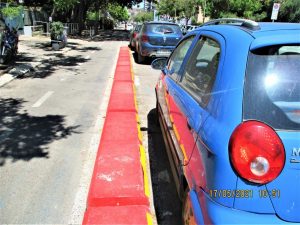 Sembra irreale quello che hanno realizzato per delimitare le piste ciclabili dalla strada dove circolano le auto. Il cordolo di cemento pressato di colore rosso con una banda metallica fissata con delle viti nel lato esterno, dove a ridosso posteggiano le auto, è pericoloso per due motivi :