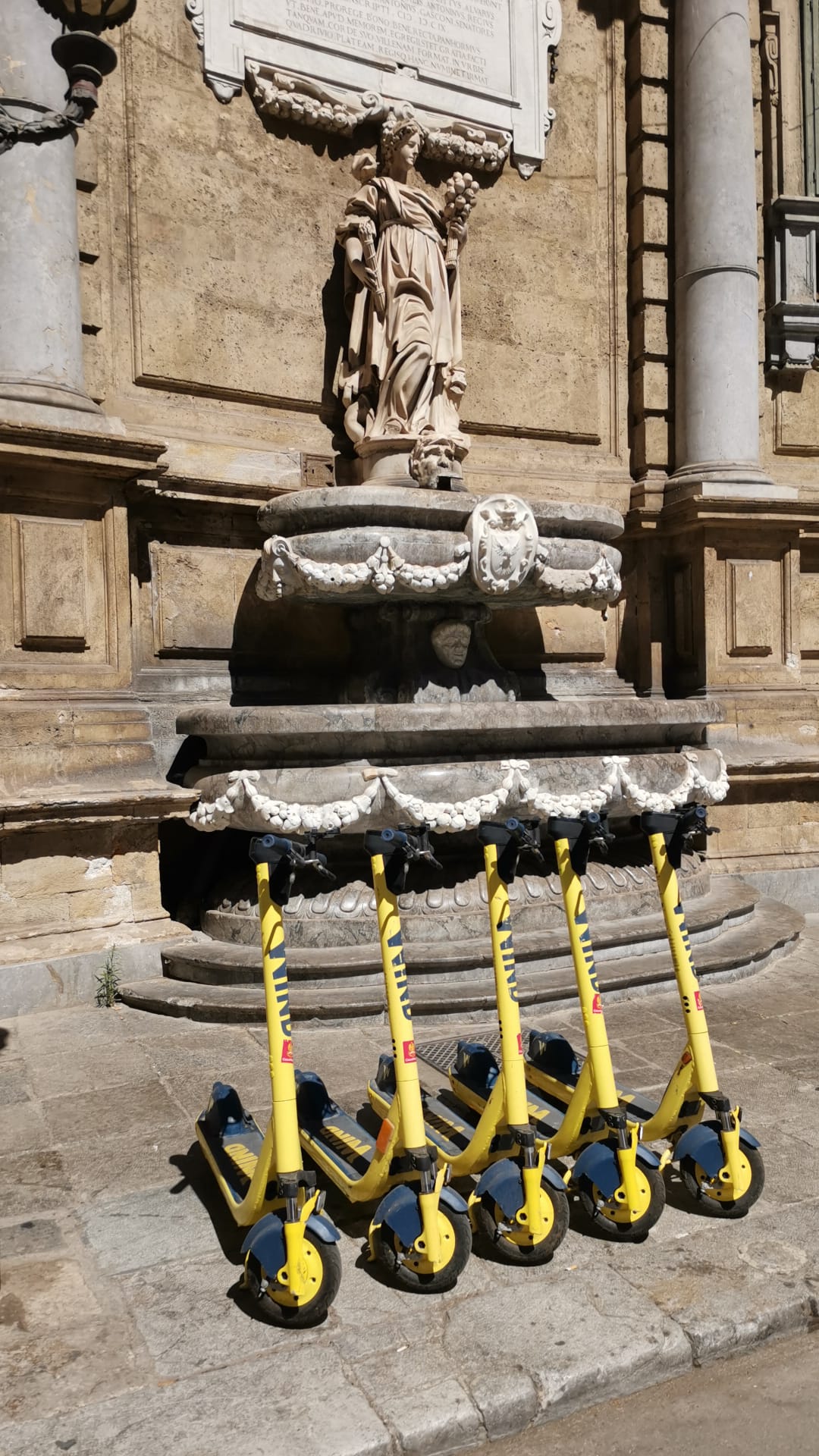 - L’ultima moda di Palermo: i monopattini parcheggiati ai Quattro Canti: eleganza, stile, senso dell’appartenenza a una comunità legata ai grandi valori culturali, in linea con l’etica del “minni staiu futtennu”…