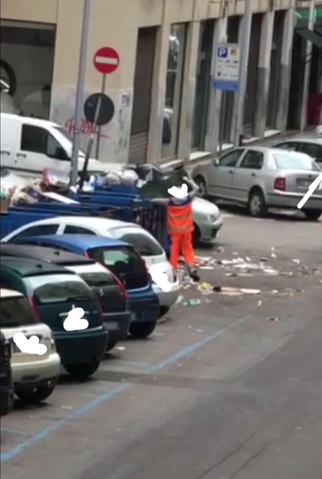 Andiamo a leggere la testimonianza di questo residente di via Napoli, traversa di via Maqueda: “È Domenica mattina (ieri 31 Ottobre per chi legge ndr) e come avevamo previsto la ‘pulizia’ è durata due giorni. Le condizioni davanti ai bidoni stamattina sono incommentabili, sembra sia esplosa una bomba di rifiuti, non so cosa pensare. Chi ritira la spazzatura nel turno serale lascia quello schifo per terra e questo è inconcepibile ed ingiustificabile. In più gli operatori, come si vede dalle foto, puliscono la via Maqueda, che a quanto pare è l’unica ‘facciata’ che secondo loro conta e poi vengono a svuotare nei cassonetti di via Napoli, passando indifferenti davanti a quello scempio, che lì resterà anche per i giorni a venire, anzi si spargerà per bene per tutta la via. Oltretutto i bidoni sono praticamente già pieni, considerato che oggi è Domenica e stasera ci sarà uno schifo come sempre. Niente, non ce la fanno a farci vivere dignitosamente, siamo una discarica e al Comune ed alla Rap sta bene così. Sì, è uno schifo senza fine, hanno sempre una scusa. Ora mi chiedo: quell’operatore sarà pure impiegato a pulire la via Maqueda, ma è normale che già a pochi metri, appena girato l’angolo su via Napoli, venga il voltastomaco? E nessuno, dico NESSUNO, pulisca mai questo tratto di strada? Vengono a scaricare tutti qui, negozi ristoranti bar pub e pure gli operatori! Ci vuole coraggio a lasciare una sporcizia del genere… impossibile che qualcuno abbia sparso tutto così. Devono essere stati sicuramente gli operatori quando hanno ritirato e, anziché pulire, alla fine hanno lasciato tutto lo schifo per terra, altrimenti non me lo spiego come sia possibile uno scempio del genere”.