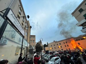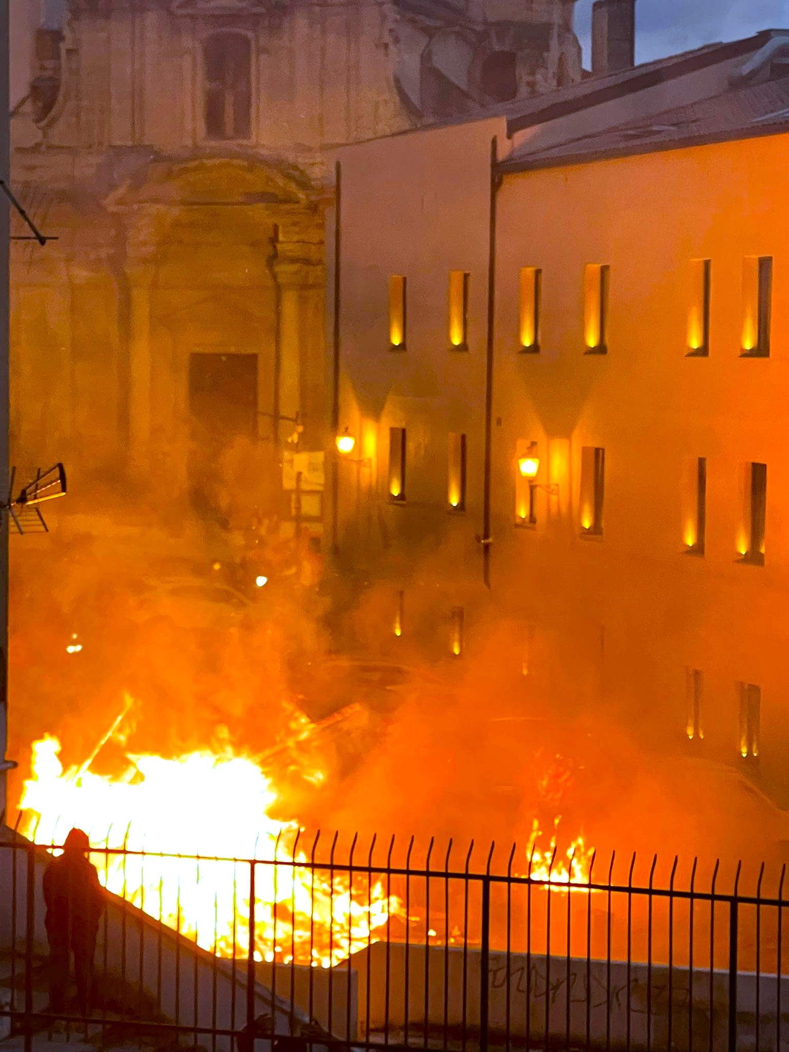 Facciamo seguito alla precedente comunicazione sotto riportata e vi inoltriamo, allegate, le foto “dell’inferno” creato da parecchi incivili scalmanati all’interno del largo Michele Gerbasi. Come si può notare dalle immagini sono state distrutte alcune auto, fortunatamente le abitazioni si sono salvate”.