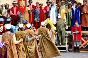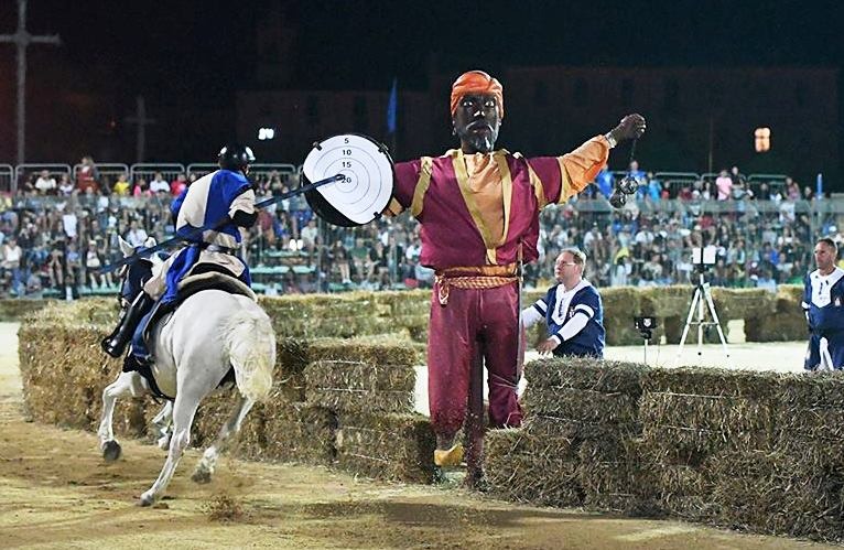 12 Agosto ore 18.00 Piazza Garibaldi consegna delle armi ai giostranti da parte del Gran Magistrato rappresentante del potere giudiziario e di governo della città, a seguire il corteo in costume che si muove verso la cattedrale per la benedizione dei Cavalieri