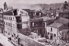 Come possiamo notare a Palermo è sempre la stessa storia. Era chiamata la “città delle trecento moschee” e Federico II, dietro apparenti motivazioni religiose, le distrusse tutte. Si racconta che pianse una notte intera prima di dare un tale ordine, ma la simpatia per la cultura musulmana non lo fece minimamente deviare della propria linea politica. A fine XIX secolo resisteva ancora una splendida tenuta chiamata il Firriato di Villafranca e venne rasa al suolo per ottenere l’area dedicata all’Esposizione Universale del 1901, per tracciare la prima tranche di Via Libertà e per operare la lucrosa lottizzazione da cui nacque il quartiere che si trova tra la stessa Via Libertà e Via Marchese di Villabianca. A cavallo della fine del XIX secolo e l’inizio del XX tutto il quartiere della Conceria venne sventrato e raso al suolo per fare posto alla Via Roma, prevista nel Piano Giarrusso “come un coltello che doveva tagliare la città” dalla Stazione Centrale fino alle prime zone di espansione nord (piazza Sturzo). Il piano Giarrusso prevedeva due “coltelli”: uno, quello che abbiamo visto, che tagliava i mandamenti Castellammare e Kalsa, con una strada parallela alla via Maqueda. Un altro, sempre parallelo alla Via Maqueda, che avrebbe dovuto tagliare i mandamenti Palazzo Reale e Monte di Pietà.