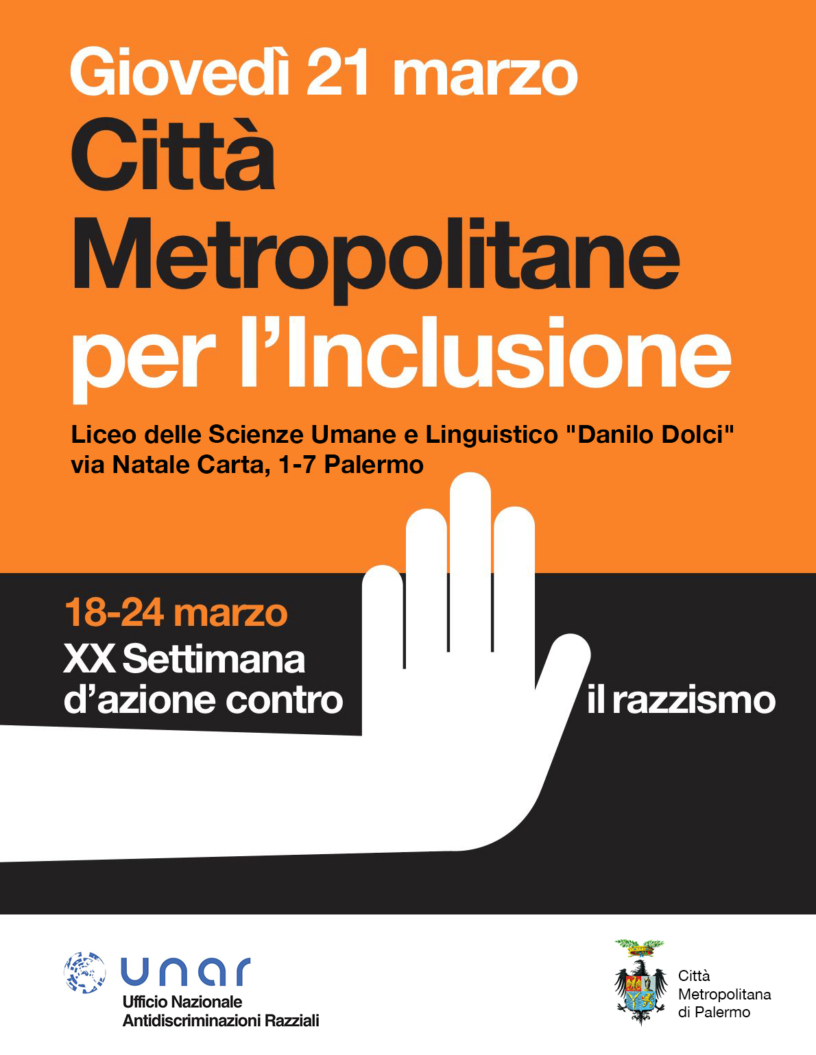 Giovedì 21 marzo, in occasione della Giornata mondiale per l’eliminazione delle discriminazioni razziali, grazie ad un accordo sottoscritto dalla Città Metropolitana di Palermo con UNAR, avrà luogo il torneo di calcetto “In campo contro le discriminazioni”. Le partite saranno disputate tra gli alunni degli Istituti Ernesto Basile, Danilo Dolci, Francesco Ferrara, Pietro Piazza di Palermo. L’iniziativa avrà inizio alle ore 9.30, presso l’Istituto Danilo Dolci di Palermo, alla presenza del sindaco metropolitano Roberto Lagalla, che porterà i saluti del direttore generale della Città Metropolitana, Nicola Vernuccio.