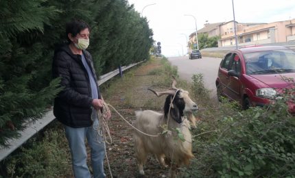 A Sant’Agata di Militello una capra libera le strade e i giardini della città dalle erbe